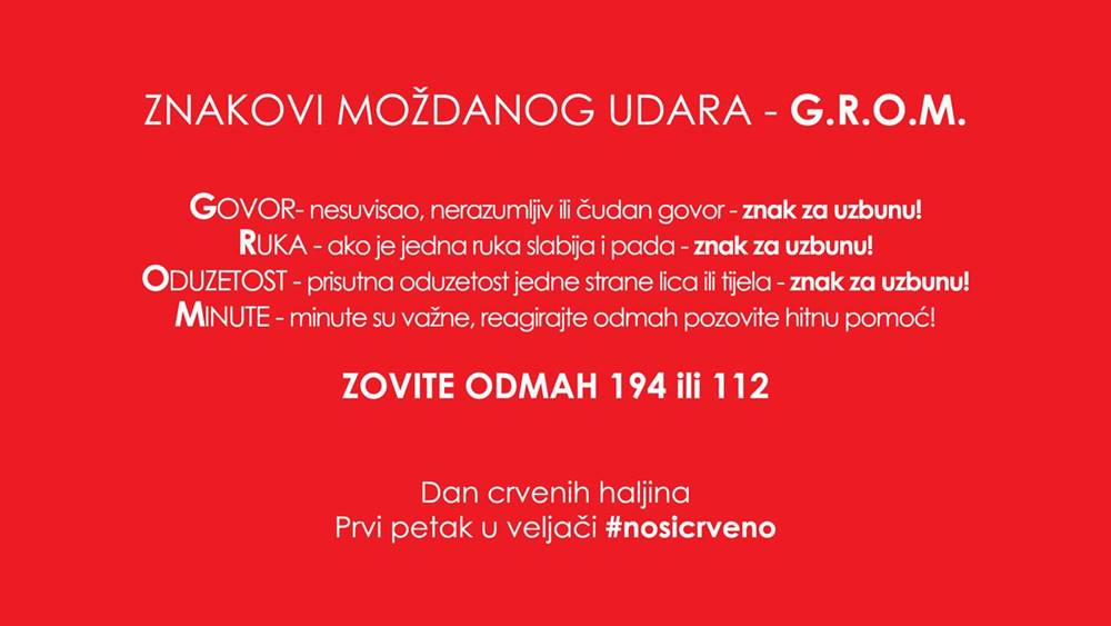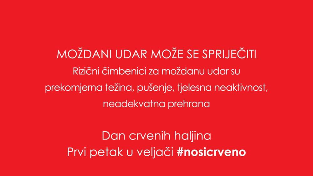 Petu godinu za redom održava se akcija Dan crvenih haljina čiji je cilj podizanje svijesti javnosti o specifičnostima moždanog udara u žena, skretanje pažnje na posljedice zanemarivanja simptoma i na nužnu potrebu promjene načina života.