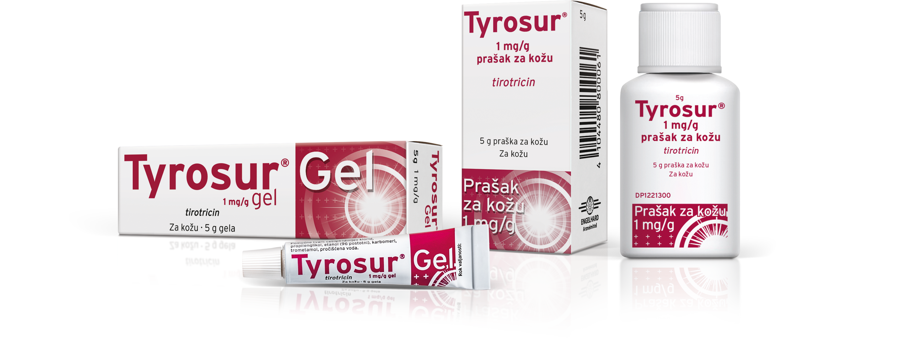 Tyrosur® gel i prašak jednostavni su i ugodni za upotrebu te omogućavaju sigurno i ubrzano cijeljenje svih tipova malih površinskih rana, zanoktica, upaljenog korijena dlake nakon depilacije ili brijanja, upaljenih prištića, manjih opeklina, upala nastala nakon piercinga ili nošenja naušnica, raščešane rane nakon uboda komaraca, žuljeva i sličnih manjih ozljeda kože.