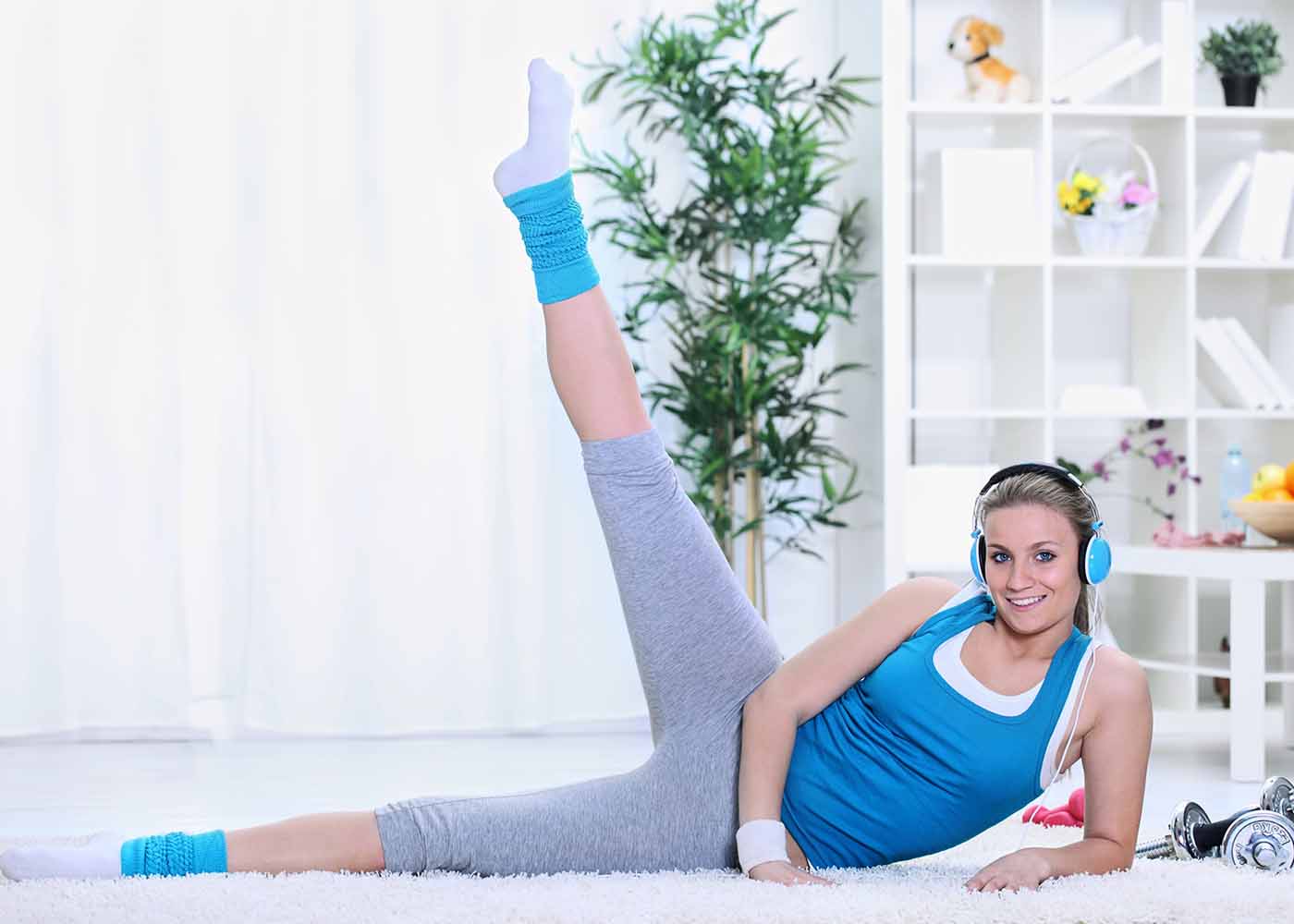 Lezite na bok i oslonite se na lakat. Ispruženu gornju nogu podižete u zrak (ne previsoko) i spuštate ju – to ponovite 25 puta. Okrenite se na drugi bok i ponovite vježbu.