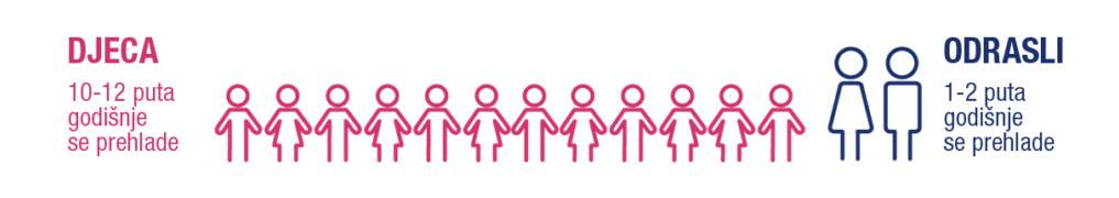 Dječje prehlade se u pravilu javljaju 10 do 12 puta godišnje, što je 5 puta češće nego kod odraslih. Tijek prehlade uvijek je isti i često započinje s tegobama u grlu, a kako prehlada napreduje, obično se javlja i kašalj. Jedan od razloga pojave čestih prehlada kod djece je i nedovoljno razvijen imunosni sustav. Osim toga, djeca su često izložena kontaktu s različitim uzročnicima bolesti: